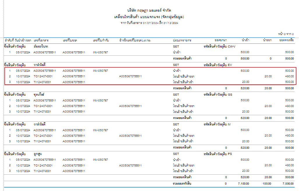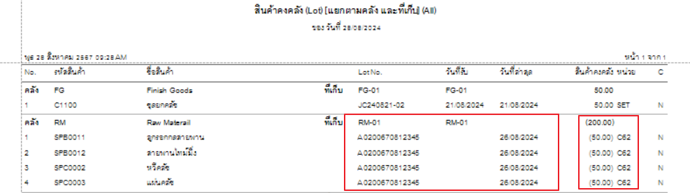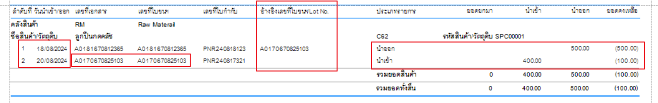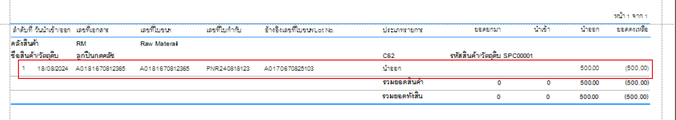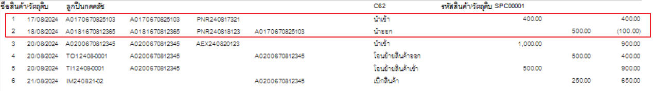 จากภาพจะเห็นได้ว่าสินค้านี้มีรายงานส่งออกวันที่ 18 มีการส่งออกสินค้าก่อนนาเข้า อาจจะมีการกลับมาแก้ไขวันที่รับเข้า ให้เป็นวันที่20 จึกทาสินค้าติดลบ