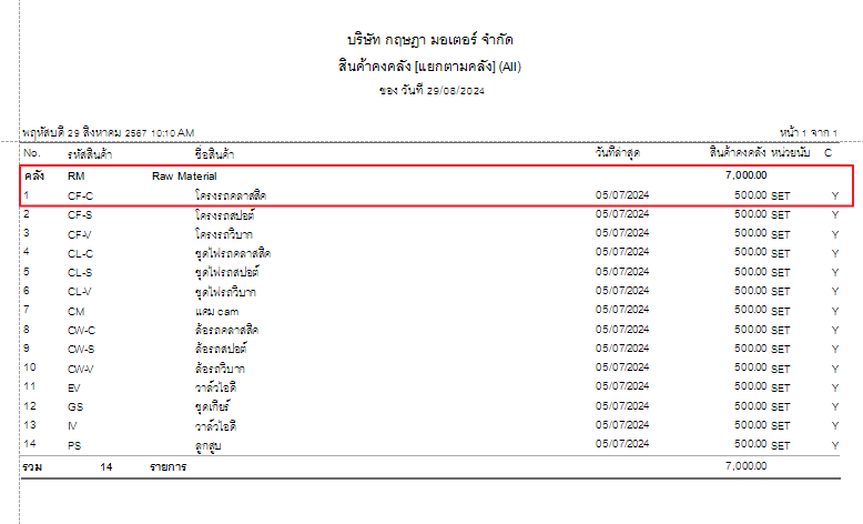 | ขั้นตอนที่ 1 FREE TRADE ZONE >> Trading >> Analysis Report >> สินค้าคงคลัง |