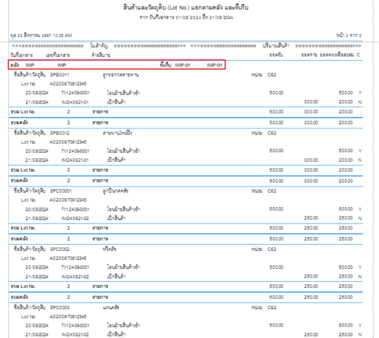 จากภาพจะเห็นได้ว่ามีแต่วันที่ส่งออกแต่ไม่มีวันที่รับเข้า ในกรณีนี้ให้เรานำเลข LotNo ไปค้นหาที่รายงานสินค้าและวัตถุดิบ