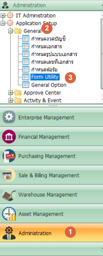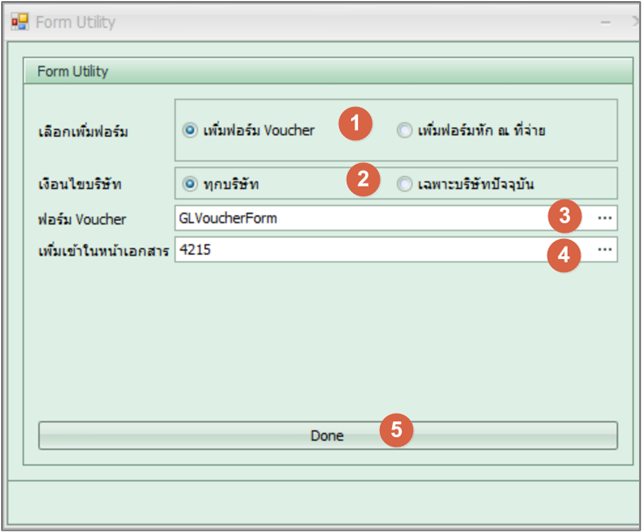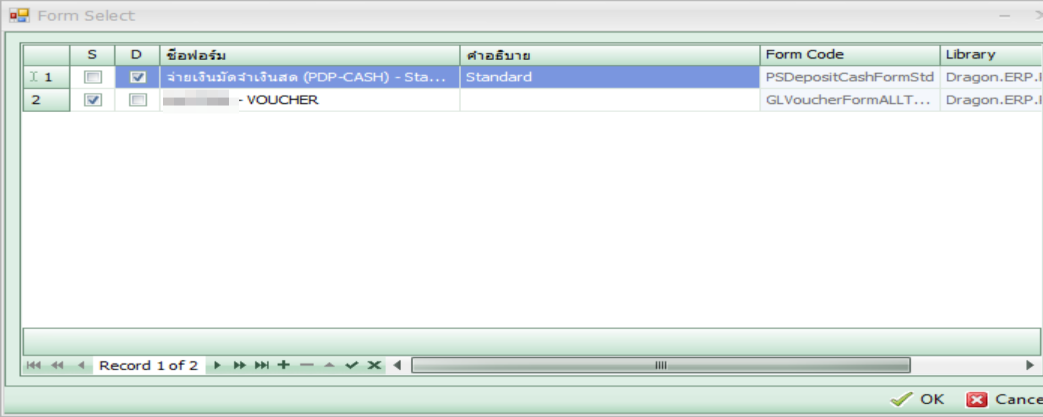เมื่อทำการ Add Form Voucher เรียบร้อย สามารถ Set default form ในแต่ละหน้าจอได้ที่เมนู กำหนดฟอร์ม
