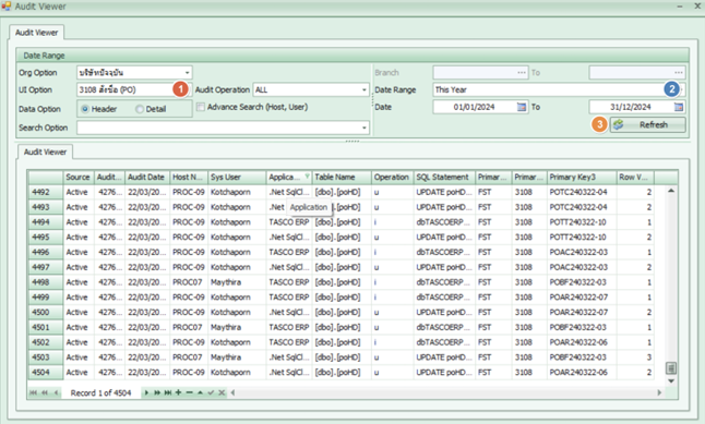 หน้าจอ Audit Viewer: สำหรับใช้ตรวจสอบการ เพิ่ม แก้ไข หรือลบข้อมูล จากการเก็บ Audit