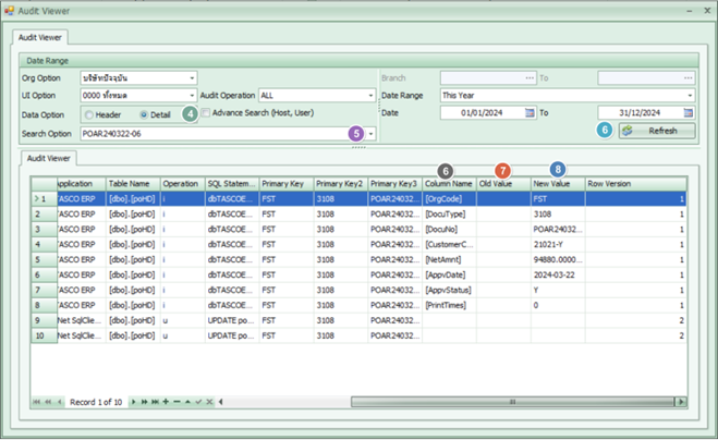 หน้าจอ Audit Viewer: กรณีต้องการดูแบบเชิงลึกว่าข้อมูลที่เปลี่ยนแปลงมีค่าข้อมูลอะไรบ้าง