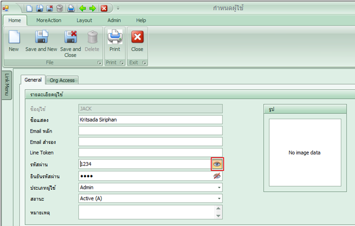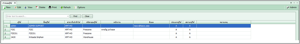 << Click to Display Table of Contents >> Navigation: TASCO ERP > Administration > IT Administration > Security Setup > กำหนดผู้ใช้ |