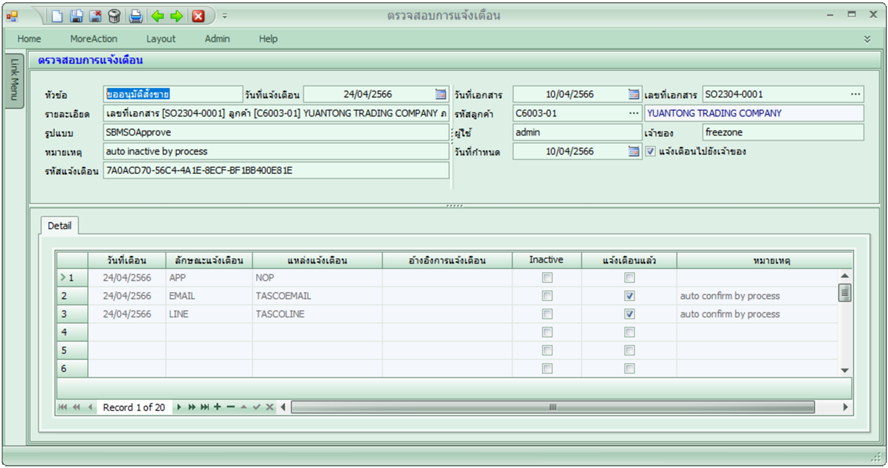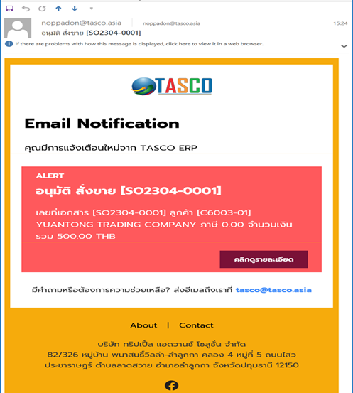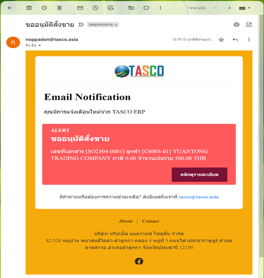 •แจ้งเตือนอนุมัติสั่งขาย: เตือนผู้อนุมัติ และพนักงานขาย