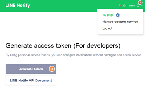 2.ส่วนของ Profile เลือกที่ My Page เลือก ‘Generate token’ |