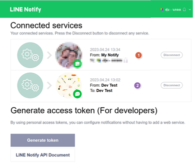 6.เมื่อกลับมาหน้าจอหลัก จะแสดง Line Notify ที่เราได้ Generate Token เพื่อการแจ้งเตือนไว้ทั้งหมด |
