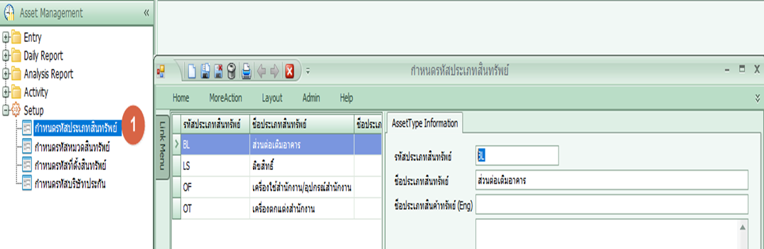 << Click to Display Table of Contents >> Navigation: TASCO ERP > Asset Management > Setup > กำหนดรหัสประเภทสินทรัพย์ |
