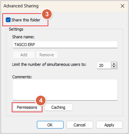 คลิก Share this folder ให้แสดงเครื่องหมายถูก |