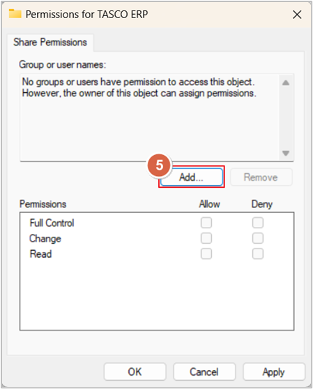 คลิก Full Control ให้แสดงเครื่องหมายถูกทั้งหมด |