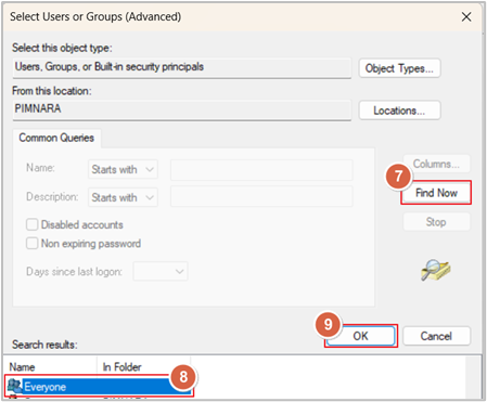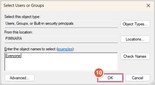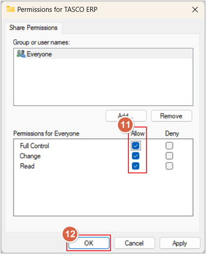 7. เลือก Everyone > ติ๊ก Allow ทั้งหมด > OK