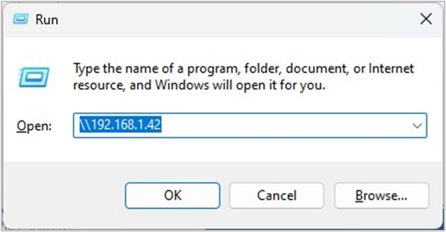 1. เปิดหน้าต่าง Run ด้วยการกดปุ่มคีย์ลัด Windows + R นำ หรัส IP เครื่อง Server มาใส่ > OK