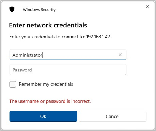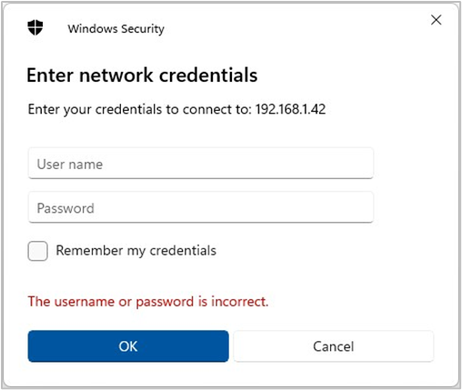 2. ใส่ User name ที่ได้จากเครื่อง Server > คลิก OK