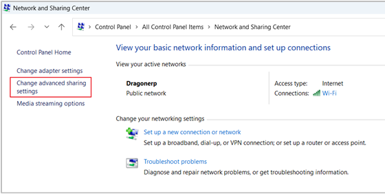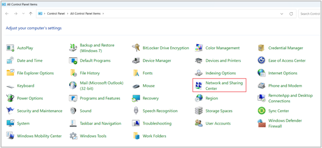1. ให้ไปที่ Control Panel > Network and Sharing Center