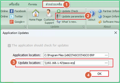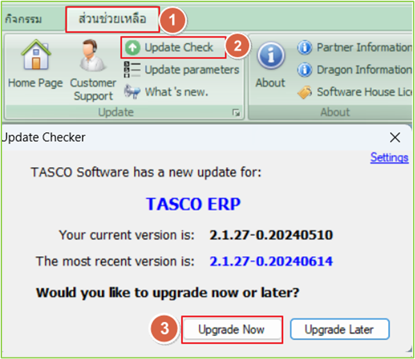 คลิกที่ Updata Check เพื่อเช็คว่า Version ตรงกันหรือไหม |