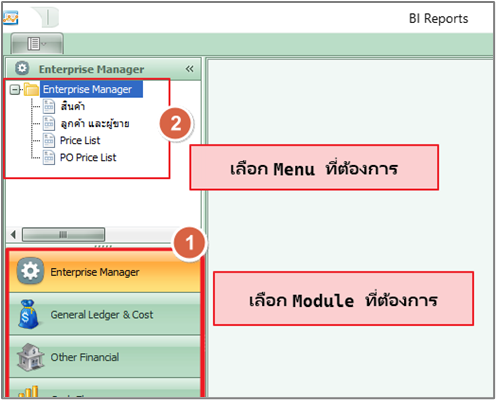 เปิด BI Repot >> โดยคลิก BI Report ที่ เมนูบาร์