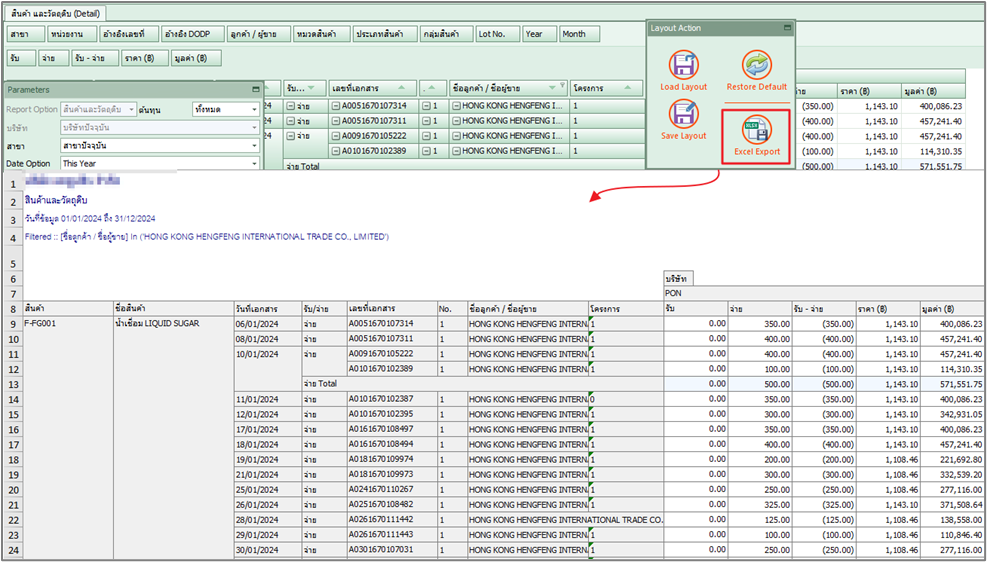 7. สามารถ Export ออกเป็นรูปแบบ Excel files ได้