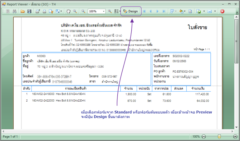 • Design Form นี้ จะไม่รวมถึงการแก้ไขรายงาน |