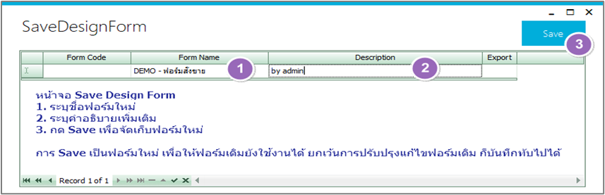 5.Save : การบันทึกฟอร์มใหม่ ที่แก้ไข และปรับปรุงจากฟอร์มเดิมแล้ว