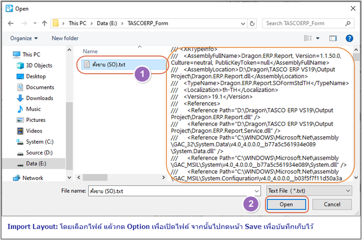 8.Impotrt Laout : เพื่อเอาไฟล์ฟอร์มจากต่างฐานข้อมูลเข้ามาได้ เมื่อกด Open จะแสดงในหน้า Design From ให้กด Save เพื่อบันทึกไฟล์ว์ แล้วค่อยตรวจสอบหรือแก้ไขต่อไป