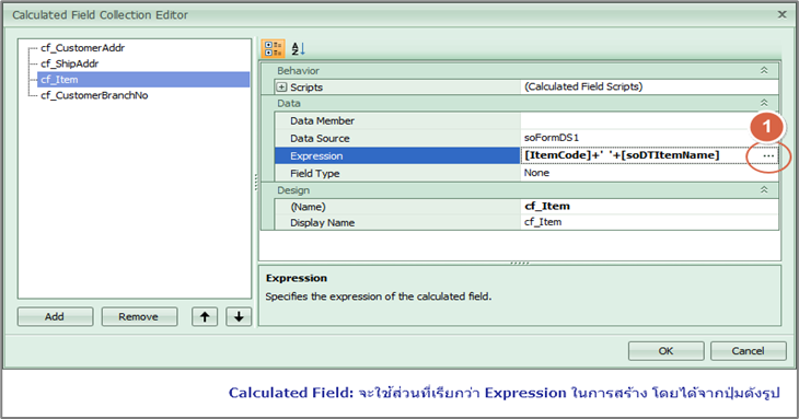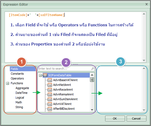 ส่วนของ Expression สำหรับการสร้าง Calculated Field
