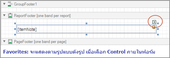 ส่วนของ Favorites: เป็นส่วนรวมของ Properties ที่มีการใช้งานบ่อยของ Control สามารถเข้าถึงได้ง่าย โดยกดที่ Control นั้น จะขึ้นรูปแบบดังรูป สามารถกดเข้าไปกำหนด Properties ในกลุ่มนั้นได้ง่ายขึ้น