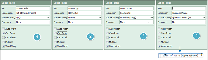 กรณีเป็นข้อมูล หากความยาวเกินกว่าที่วางไว้ ให้ขยายความสูงอัตโนมัติ เช่น Field ชื่อสินค้า หรือที่อยู่ลูกค้า เป็นต้น |