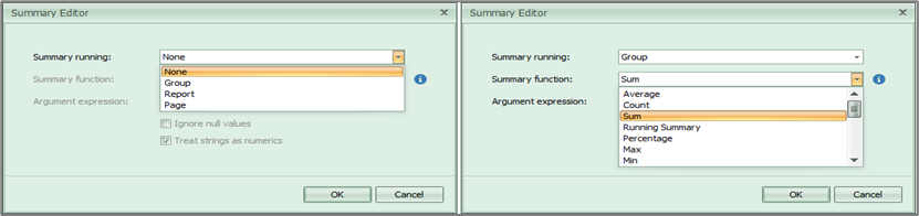 ระบุการทำงาน เช่น Average, Count, Sum, Running Summary เป็นต้น |