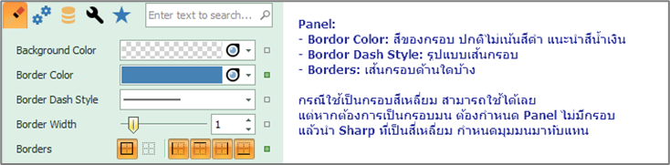 ➢ Panel: สำหรับการวางข้อมูลเป็นกลุ่ม แต่มีข้อเสียเนื่องจาก Panel ทำเป็นกรอบมนไม่ได้