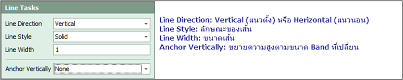 ➢ Line: สำหรับการลากเส้น เพื่อตีกรอบเป็นตาราง (ไม่สามารถข้าม Band ได้ โดยส่วนของ Band จะอธิบายในส่วนประกอบของฟอร์ม)