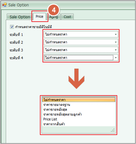 เลือก Tab Price เลือกระดับการแสดงราคาขายที่ต้องการ โดยมี 5 รูปแบบให้เลือก