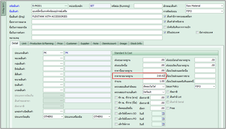 • ราคาขายมาตรฐาน หมายถึง ให้โปรแกรมแสดงราคาขายที่กำหนดไว้ที่ Item setup คอลัมน์ราคาขายมาตรฐาน