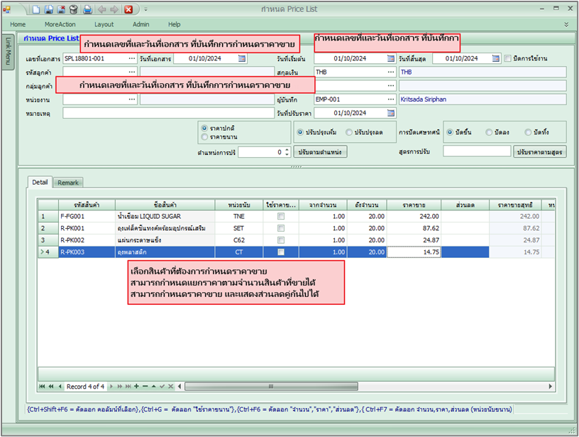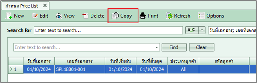 หมายเหตุ หากมีการตั้งราคาขายหลายรูปแบบ สามารถใช้ Copy เอกสารเก่าแล้วนำมากำหนดเพิ่มได้