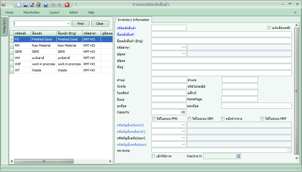 << Click to Display Table of Contents >> Navigation: TASCO ERP > Enterprise Management > Warehouse Setup > กำหนดรหัสคลังสินค้า |