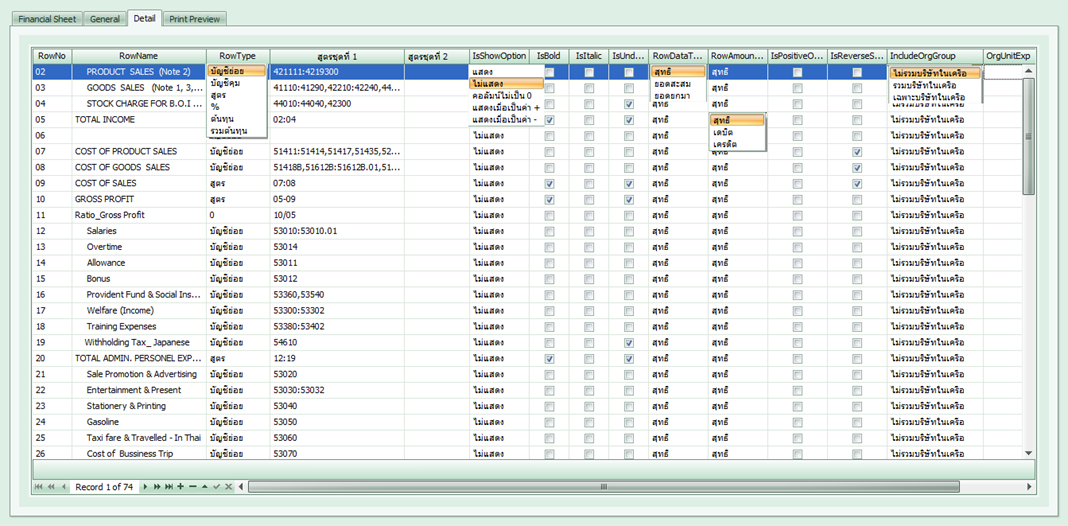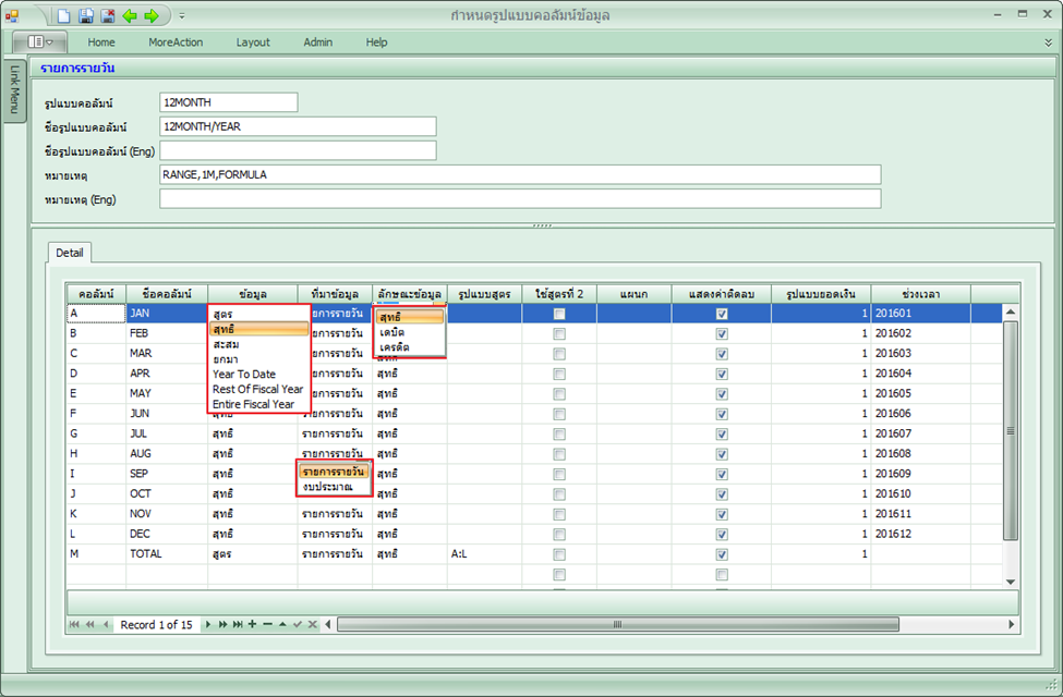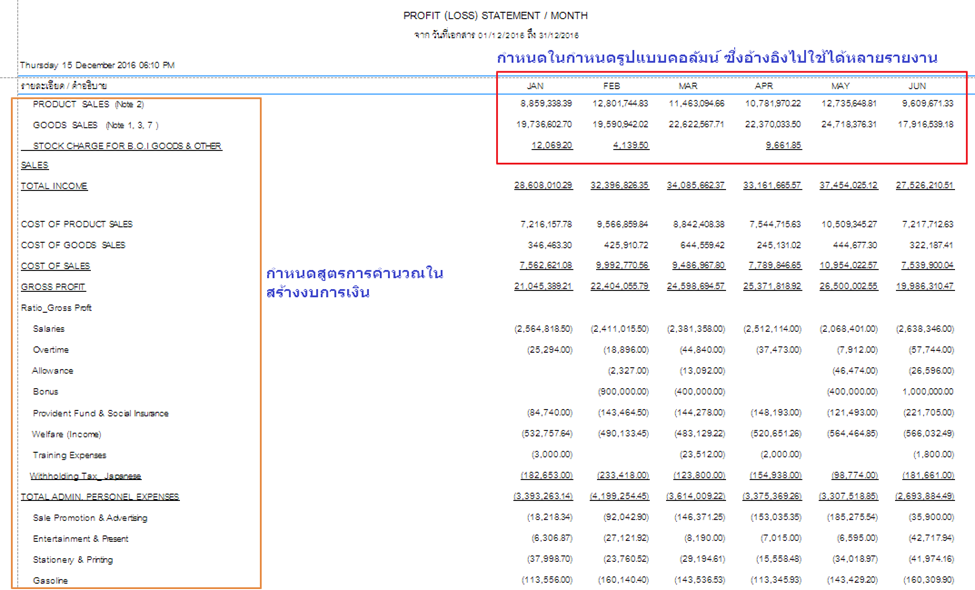 : กำหนดรูปแบบคอลัมน์ในงบการเงินว่ามีคอลัมน์การคำนวณอะไรบ้าง |