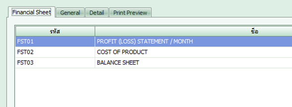 << Click to Display Table of Contents >> Navigation: TASCO ERP > Financial Management > General Ledger > Financial Report > สร้างงบการเงิน |