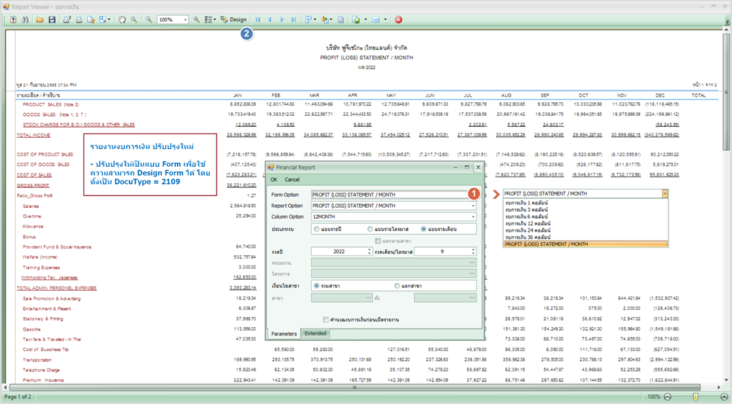 : รายงานงบการเงินตามรูปแบบกำหนด (Beta ยังเป็นรูปแบบที่ Fixed ตาม Pattern ที่มีให้) |