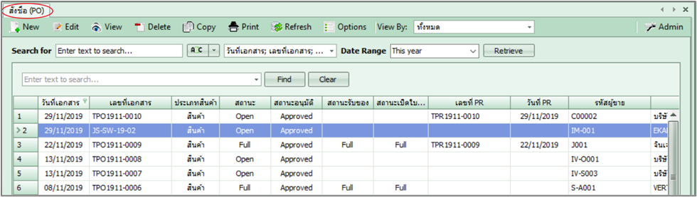 << Click to Display Table of Contents >> Navigation: TASCO ERP > Purchasing Management > Entry > สั่งซื้อ (PO) |