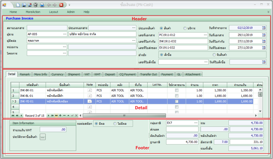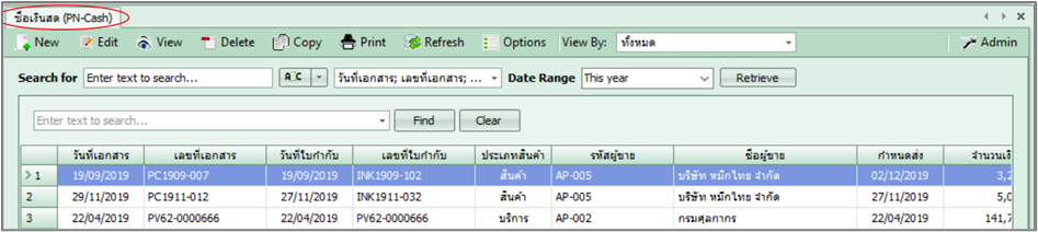<< Click to Display Table of Contents >> Navigation: TASCO ERP > Purchasing Management > Entry > ซื้อสด (Cash) |