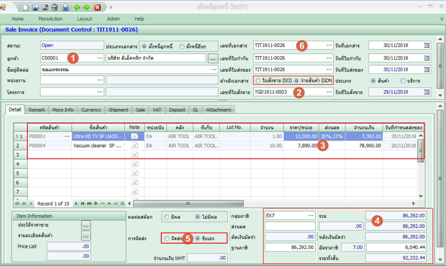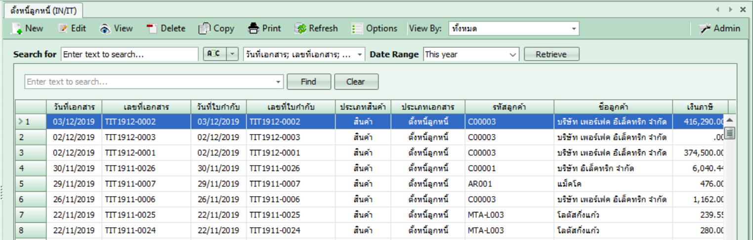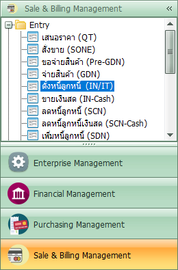 << Click to Display Table of Contents >> Navigation: TASCO ERP > Sale & Billing Management > Entry > ตั้งหนี้ลูกหนี้ (IN/IT) |