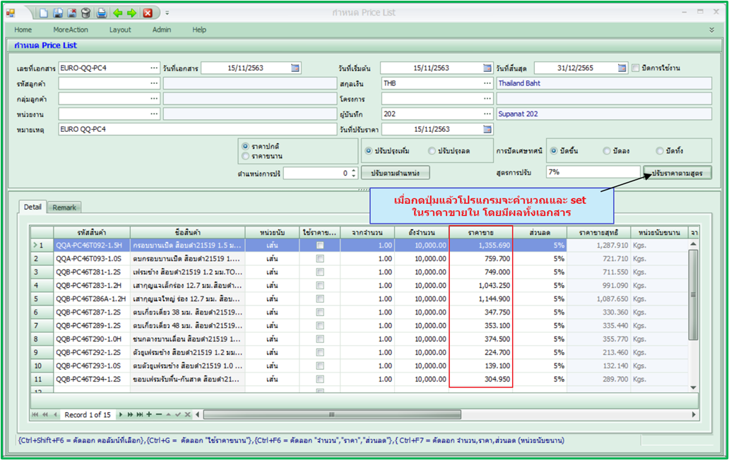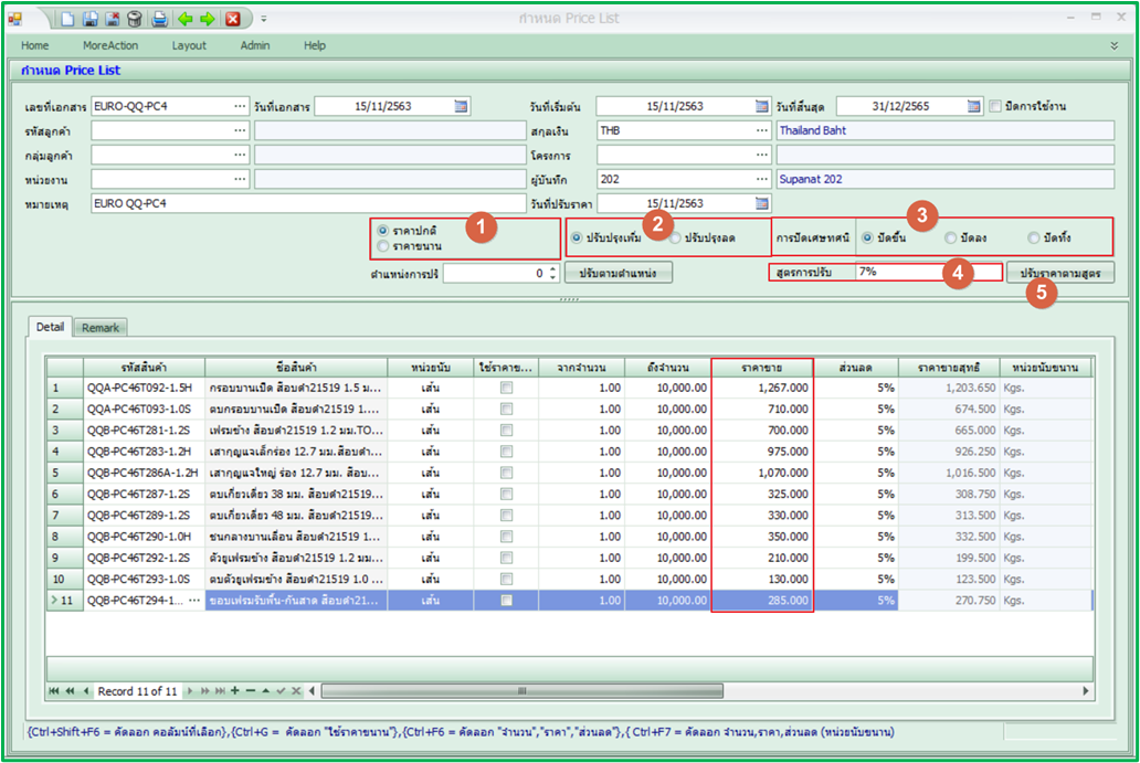 ปรับราคาตามสูตร คือ การปรับราคาโดยมีผลทั้งเอกสาร เช่น อยากปรับราคาปกติขึ้น 7% ตามด้านล่างเป็นรูปก่อนปรับข้อมูล