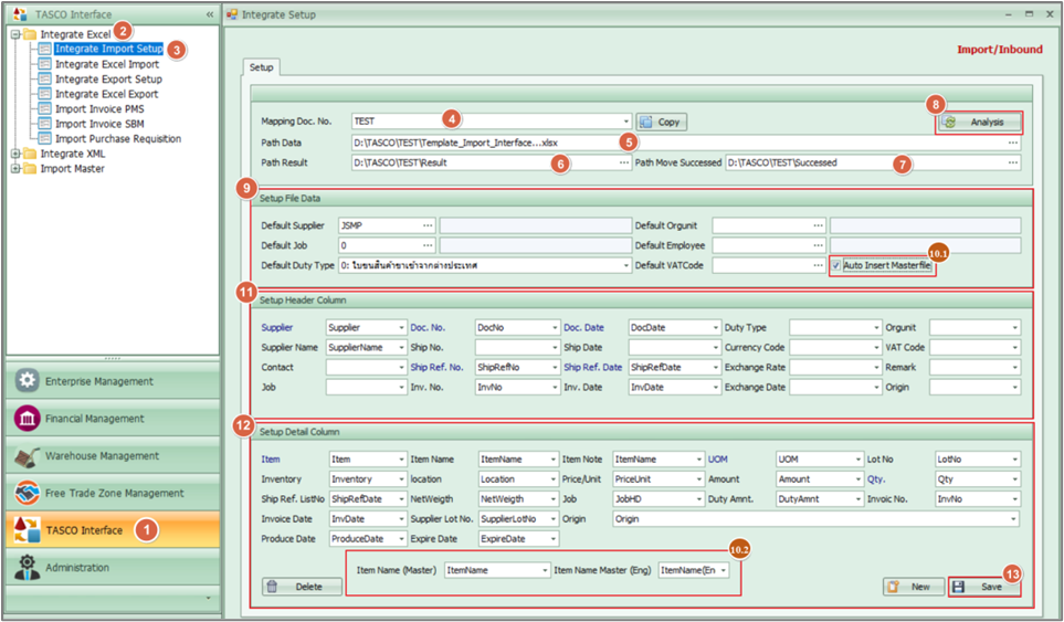<< Click to Display Table of Contents >> Navigation: TASCO INTERFACE > Integrate Excel > Integrate Import Setup |