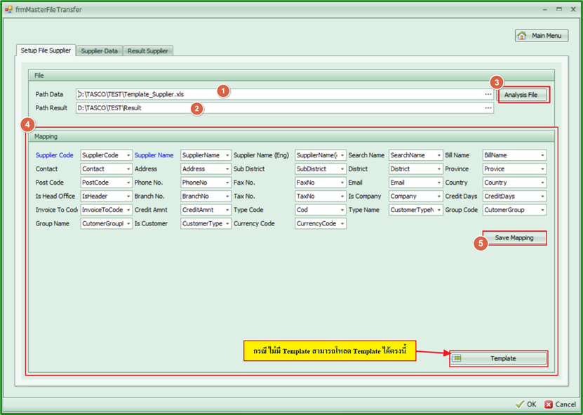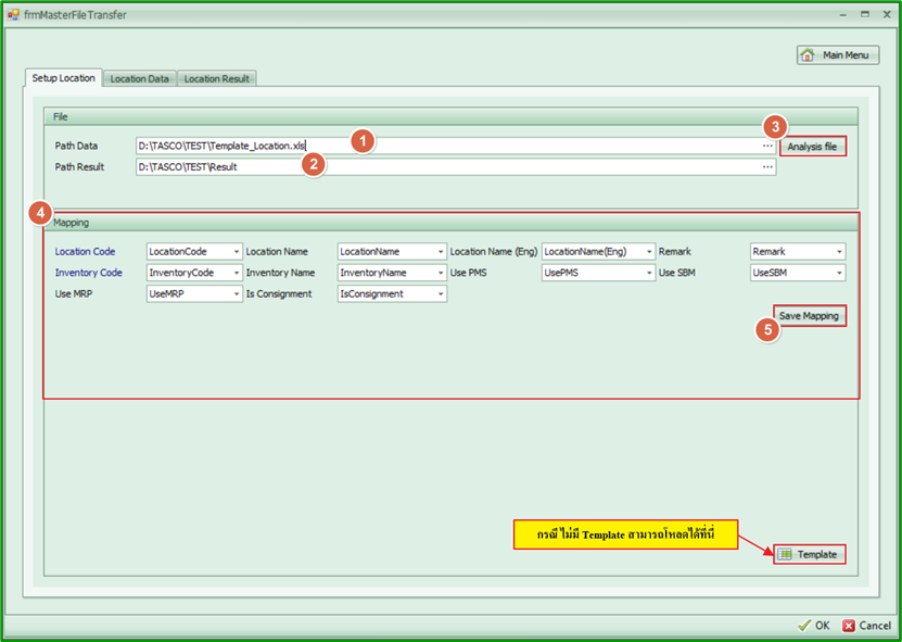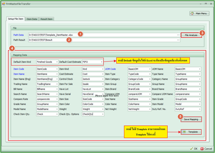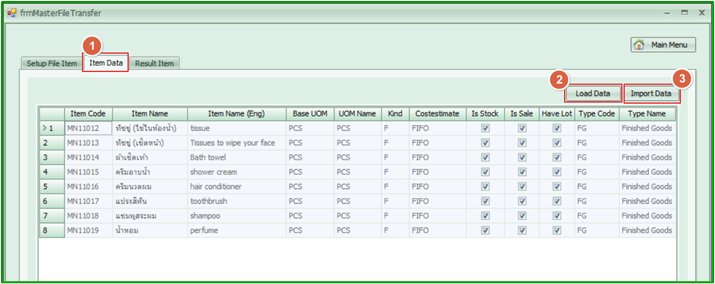 Item Data >>> Load Data > เพื่อโหลดคอลัมน์ที่ทำงานลิงค์ไว้ในหน้า Setup File Item |