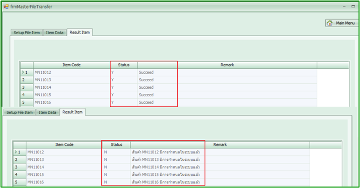 หาก Interface ไม่สำเร็จ ช่อง Status จะขึ้น N และในช่อง Remark จะระบุสาหตุที่ Interface ไม่สำเร็จ
