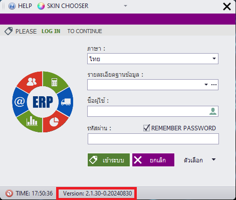 •กด Cancel: เพื่อไปอยู่ “หน้า Login” แล้วค่อยออกจากโปรแกรม เพื่อไปอัพเดทโปรแกรม หรือปรับปรุงฐานข้อมูลให้สอดคล้องกัน เพื่อความถูกต้องข้อมูลภายในระบบ และป้องกันปัญหาจากการใช้งานโปรแกรมที่จะเกิดขึ้นได้