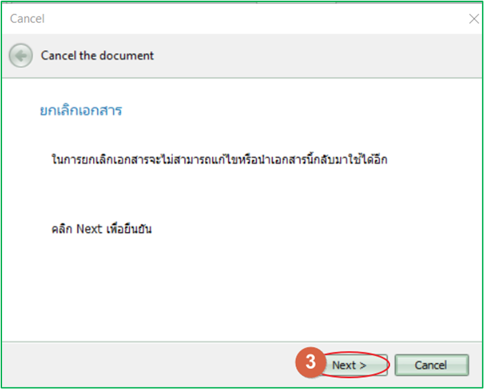 3.ยืนยันการยกเลิก กด Next