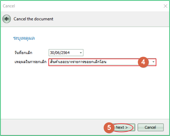 4.ระบุเหตุผลที่ต้องการยกเลิก