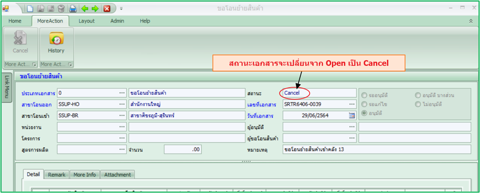 1.เปิดเอกสารที่ต้องการยกเลิก คลิกเมนู More Action