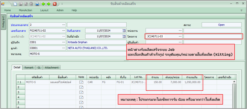 ให้สามารถรับสินค้าที่หน้ารับผลิตเสร็จได้ แต่ใช้ โครงการในการคุมการผลิต เพื่อตรวจสอบการผลิตผ่าน BI Report