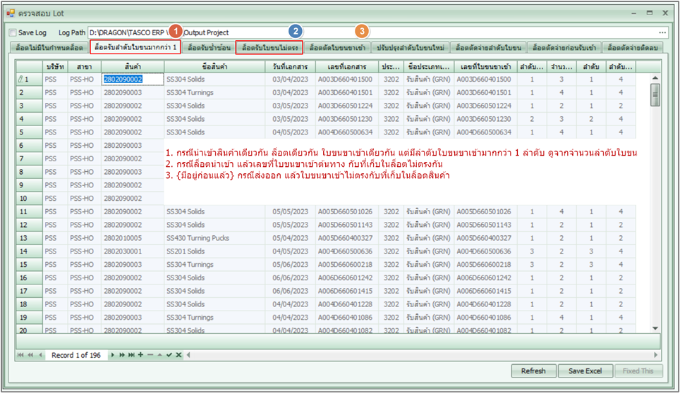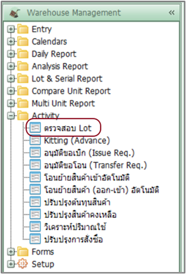<< Click to Display Table of Contents >> Navigation: TASCO ERP > Warehouse Management > Activity > ตรวจสอบ Lot |