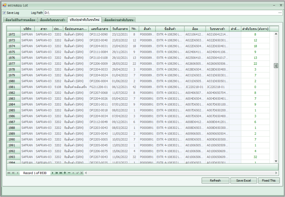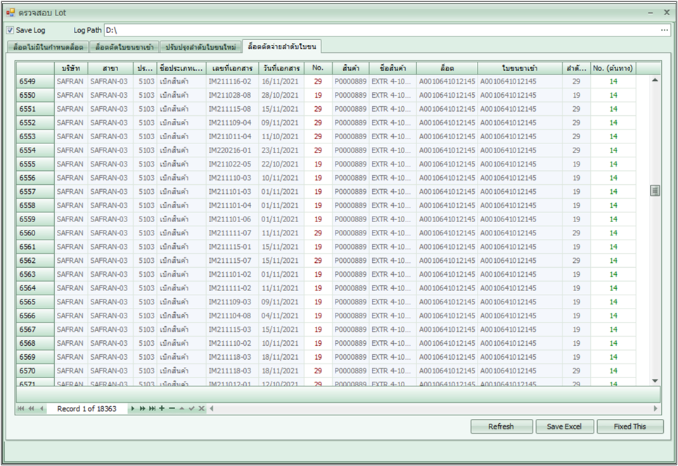 2.กรณีล็อตนำเข้า แล้วเลขที่ใบขนขาเข้าต้นทาง กับที่เก็บในล็อตไม่ตรงกัน (มีการ Fixed)